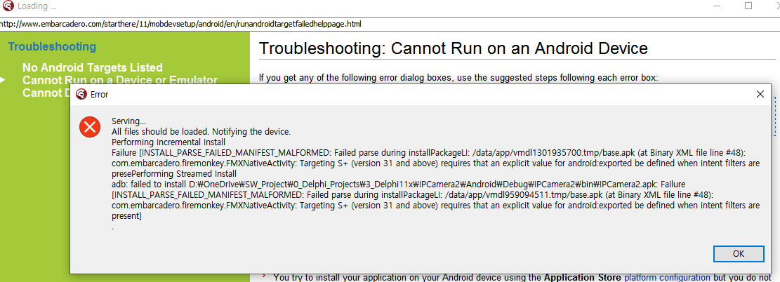 2. 안드로이드 폰에서 install 할 때 에러 발생(안드로이드 버전 31 이상에서 발생)